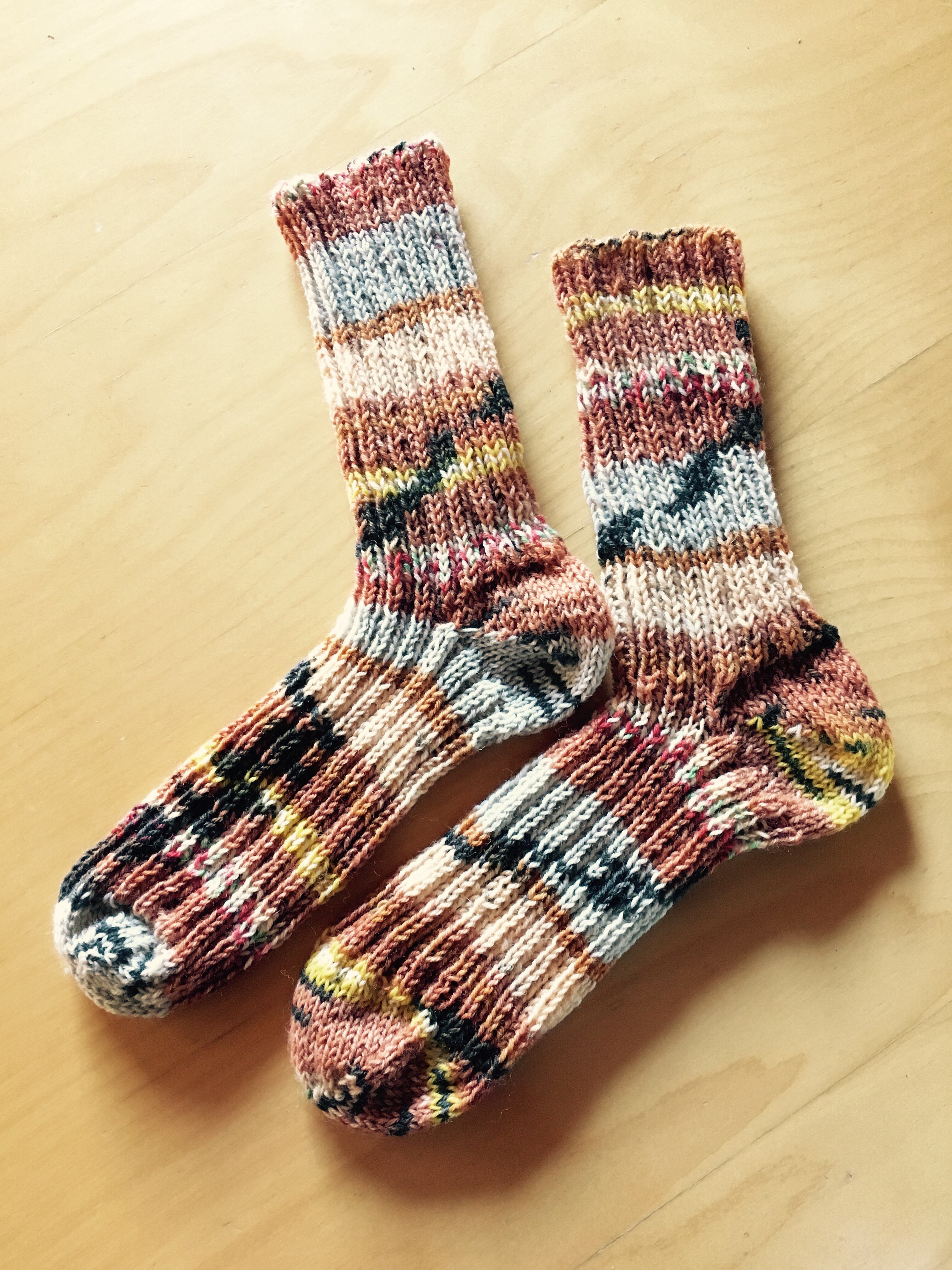 画家の絵画をイメージして染められたカラフルな糸での手編み靴下。ひとつひとつが独自なパターンの個性的でしかも絶対に暖かいソックス、クリスマスプレゼントにいかがでしょうか。