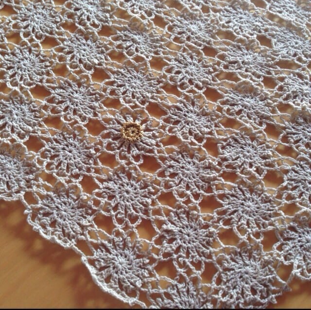 ふんわりとやわらかい綿麻の糸で台形型の大判ショール。